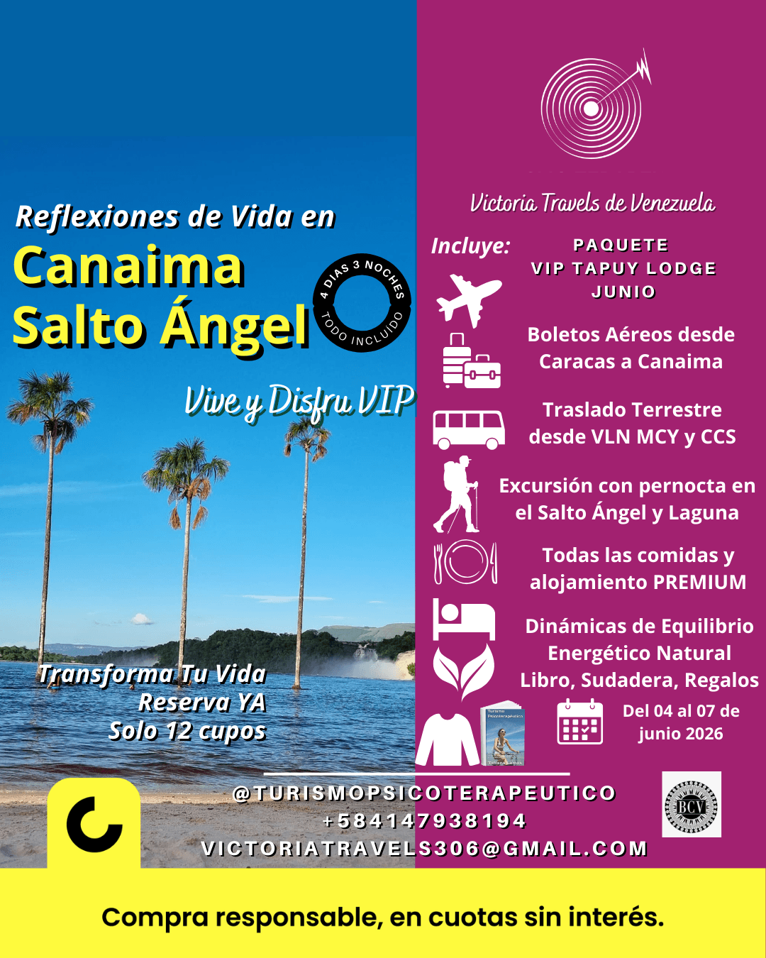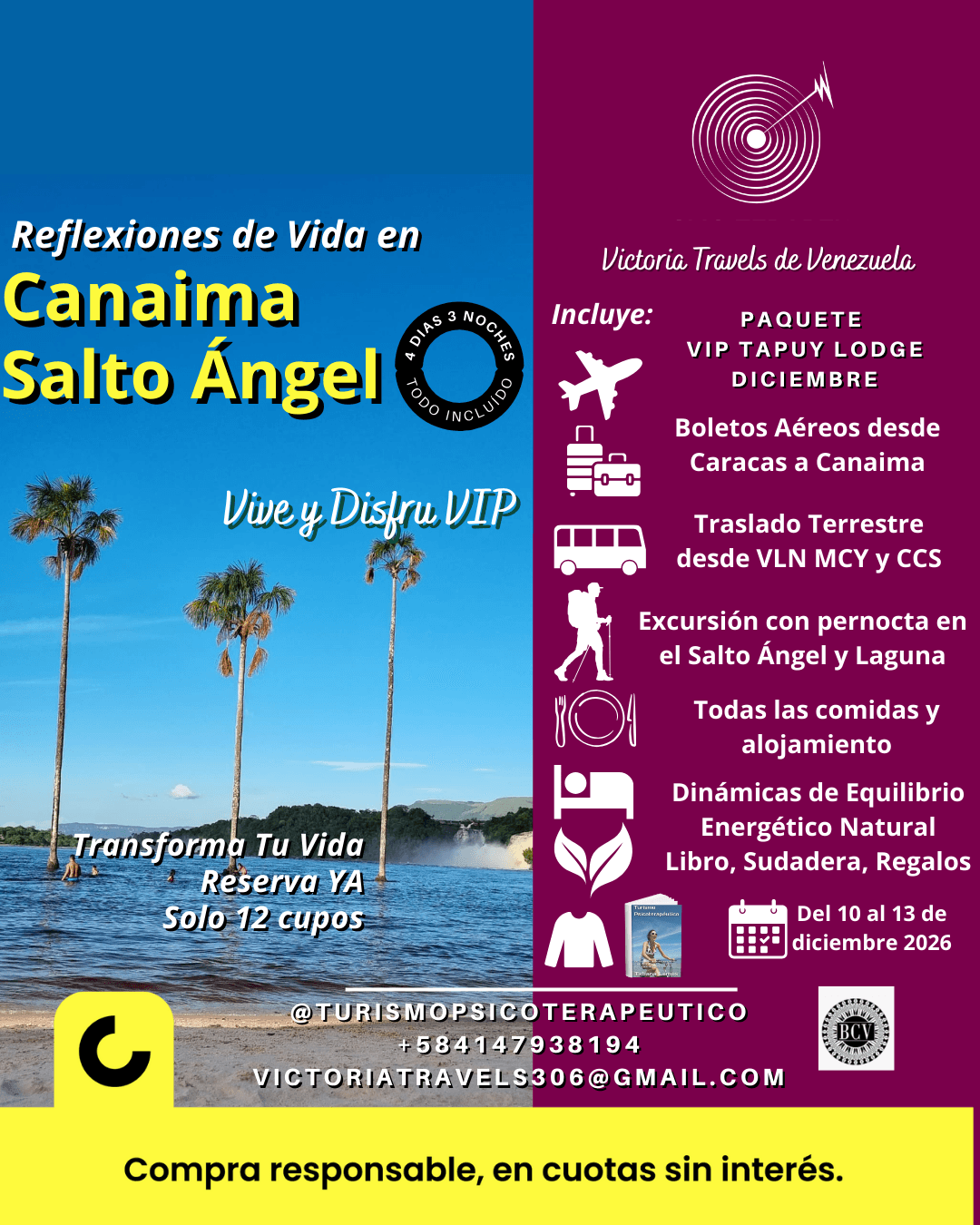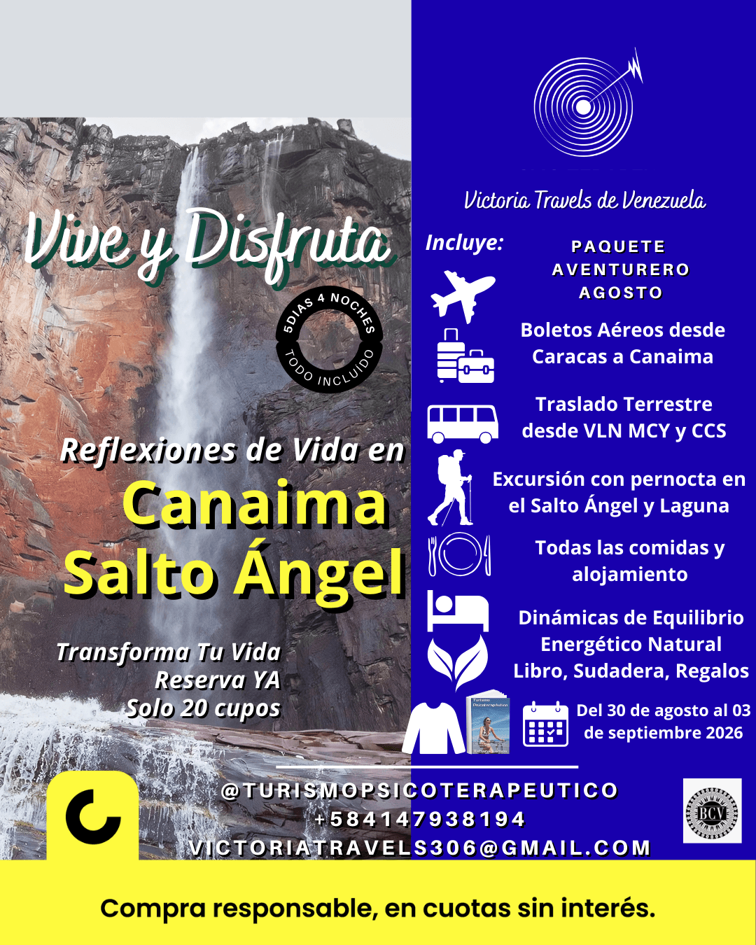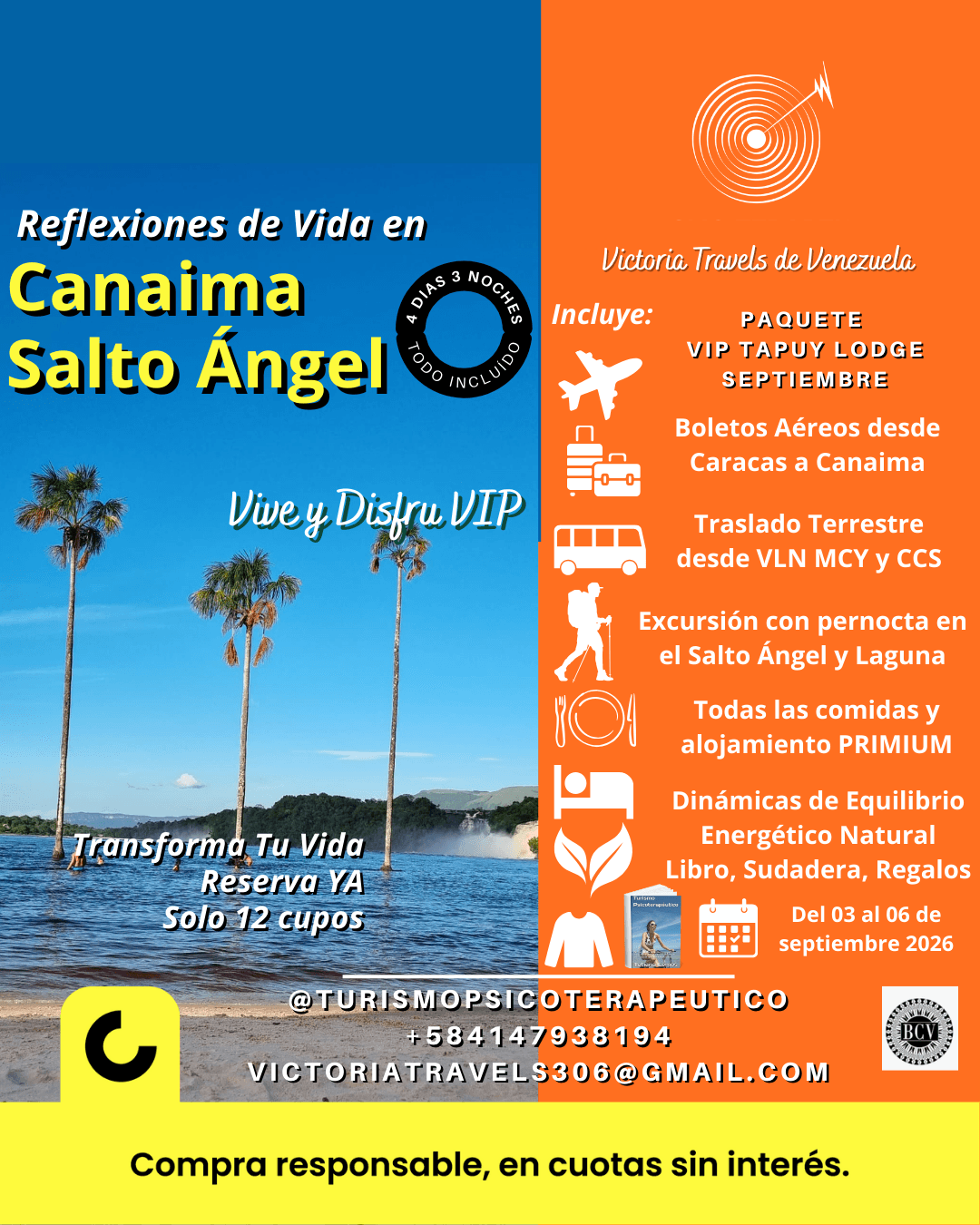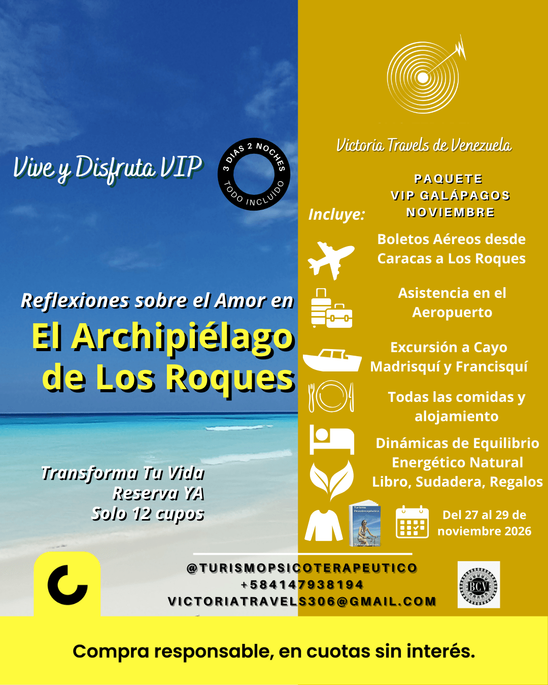Puedes pagar con tranquilidad en cuotas con todas las facilidades con CASHEA que es nuestro aliado Nro 1, buscanos dentro de la Aplicación como Victoria Travels de Venezuela